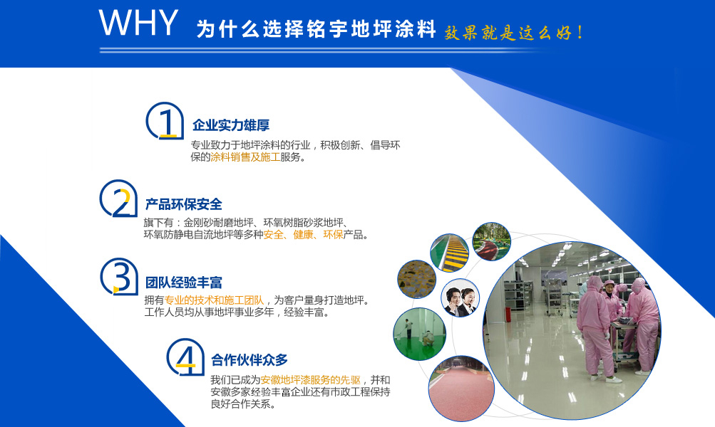 安徽銘宇建材科技有限公司是一家致力于地坪涂料的行業(yè),旗下有金剛砂耐磨地坪,環(huán)氧樹脂砂漿地坪,環(huán)氧防靜電自流地坪,停車場防滑地坪,混凝土密封固化劑和丙烯酸球場,無震動(dòng)止滑車道、塑膠跑道、工廠地板漆等工程施工服務(wù)。 憑借本身的技術(shù)能力和研發(fā)條件,加上多年對(duì)環(huán)氧地坪和耐磨硬化地坪等各類工業(yè)地坪的涂裝、施工的實(shí)踐經(jīng)驗(yàn)、技術(shù)己處于國內(nèi)專業(yè)水平,經(jīng)檢測機(jī)構(gòu)檢驗(yàn)符合相應(yīng)的技術(shù)標(biāo)準(zhǔn)。同時(shí)安徽銘宇建材科技有限公司還組建了經(jīng)驗(yàn)豐富的工程技術(shù)隊(duì)伍以及工程施工隊(duì)伍、簡歷了完善的售后施工服務(wù)體系,滿足用戶的需要。 安徽銘宇建材科技有限公司是一家積極創(chuàng)新、倡導(dǎo)環(huán)保的涂料銷售及施工服務(wù)的廠家,安徽銘宇建材科技有限...